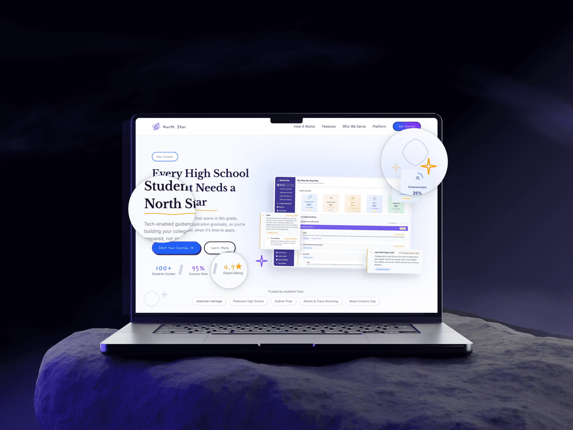 Sole designer for two AI platforms, a student task manager, and a college prep tool, owning product, brand, and marketing design from 0→1 to establish early user trust and clarity.
